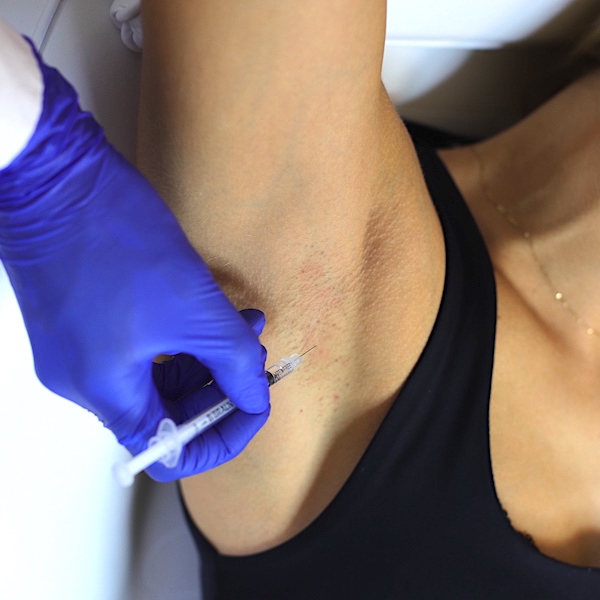 Aplikace botulotoxinu v oblastech podpaží a rukou (hyperhidróza). Potlačí se produkce potních žláz a tím se zamezí nepříjemnému pocení.